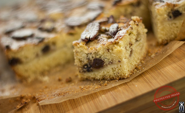 Heat the oven to 180`c and line a rectangular baking tin (approx 27cm x 20cm) with parchment paper. Peel, core and thinly slice the apples then squeeze the lemon juice over. Set to one side. Place the butter, caster sugar, eggs, vanilla, flour and baking powder into a large bowl and mix well until smooth. When ready, finally stir in the chopped walnuts. Spread 1/3 the mixture into the prepared tin. Arrange ½ of the apples over the top of the mixture followed by ½ of the cinnamon and the Christmas mincemeat. Carefully spread over 1/3 of the cake mixture followed by the remaining apple slices. Sprinkle over the remaining cinnamon. Finally, cover with the remaining cake mixture and sprinkle over the demerara sugar. Bake in the oven for 45-50 minutes until golden and springy to the touch. Meanwhile, mix together the icing sugar and 1 tsp cinnamon with a little warm water to make a glace` icing and as soon as the cake comes out of the oven drizzle it all over. Serve the apple cake with a scoop of vanilla ice-cream.