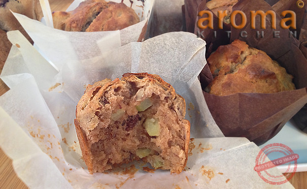 Heat the oven to 200`c and line a 12-hole muffin tin with paper cases. Mix the egg, melted butter and milk quickly into the dry ingredients with the chopped apple and pecan nuts (don’t over mix, it should be a bit lumpy). Divide between the cases and bake for 25 minutes until risen, golden and cooked through.