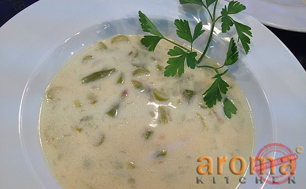 Heat the olive oil, and butter in a saucepan over a medium heat. Add the onion and fry for four minutes, until softened. Add the asparagus and cook for another two minutes. Now add the flour and stir. Add the stock, milk and bring to the boil. Season, to taste with salt and freshly ground black pepper and reduce the heat and simmer for 5-7 minutes, or until the asparagus is cooked through. Add the cream and blend with a hand blender until smooth.