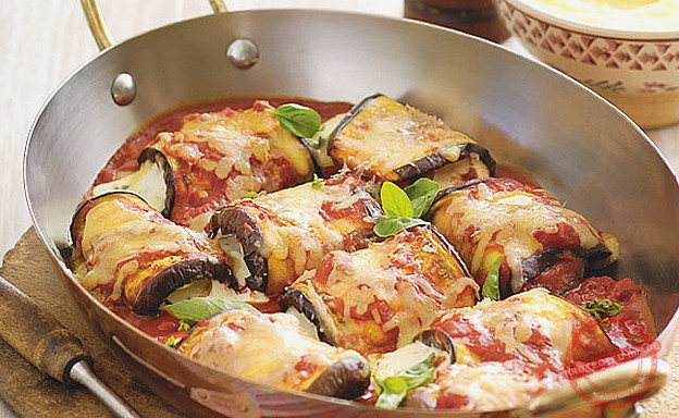 Aubergine and ricotta involtini with Parmesan and pine nuts