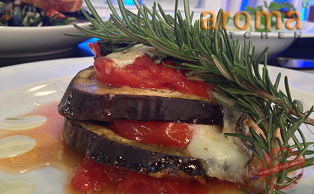Aubergines with anchovies, basil and mozzarella cheese