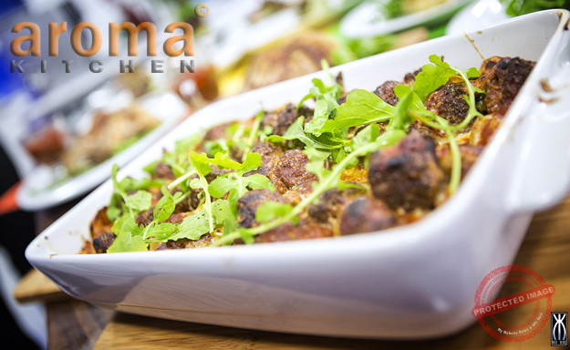 Start this recipe by heating 1 tablespoon of oil in a pan and soften the onion and garlic together for 3 minutes. Transfer to a food processor and add in all the remaining polpetti ingredients. Blitz together for a few seconds then roll into small balls the size of a walnut. Heat the remaining oil in a pan and and quickly seal the polpetti all over for a few minutes. Next, add in the stock pot, red wine and salsa pronto and cook for a further 3 minutes. Place the ½ cooked pasta into an oven dish and pour over the polpetti and sauce mixture. Tear the mozzarella into pieces and scatter on top. Sprinkle over the extra Parmesan cheese and bake in the oven at 200`c for just 15 minutes. Remove from the oven and serve immediately with the rucola leaves scattered over the top.
