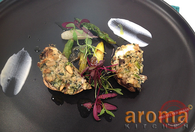 Baked Portobello mushrooms with asparagus and Goat cheese