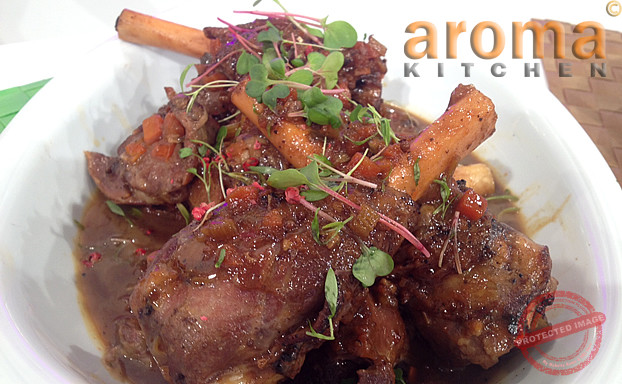 Preheat the oven to 110 C. Brown the lamb in oil in a casserole dish or heavy based ovenproof saucepan, then remove the lamb and set aside. Now Brown the vegetables and garlic in the same pan. Add the spice and cook gently to lightly toast them. Add the lamb, wine and stock, bring to the boil, skim and cover with a lid. Transfer the casserole to the oven and cook for 2 1/2 hours. Remove from the oven and allow the lamb to cool in the cooking liquor. Remove the lamb carefully and wrap in foil. Pass the cooking liquor through a fine sieve .Now reduce the liquid by half and finish the sauce by adding little harissa to taste. Serve with Greek yoghurt.