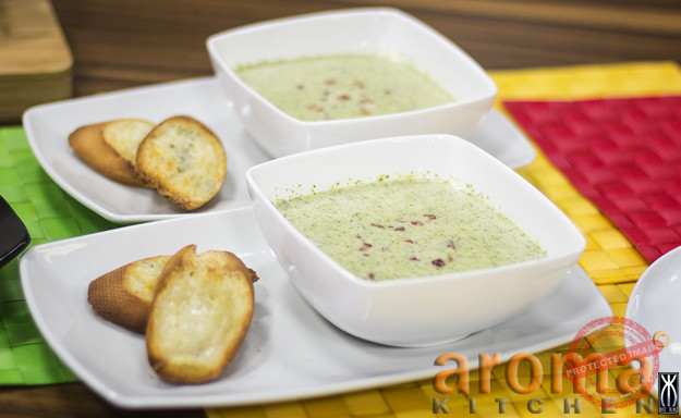 Broccoli and dolcelatte soup with crispy pancetta