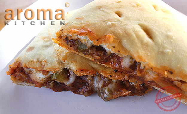 Pizza magħluqa biz-zalzett tal-Malti, żebbuġ u mozzarella