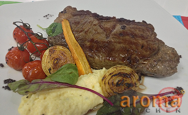 Char-grilled sirloin with radicchio and polenta