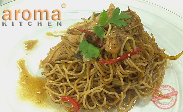 Chicken noodles with honey and sesame