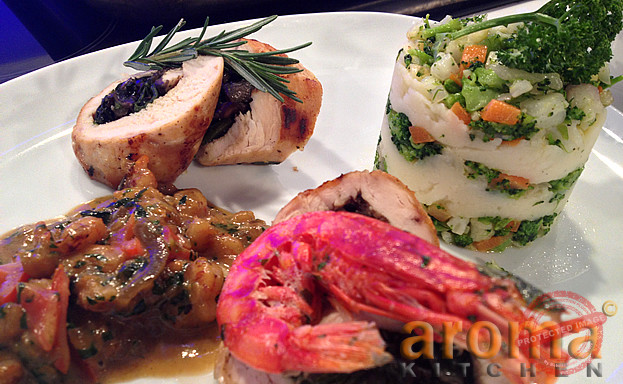 Chicken roulade with prawn sauce