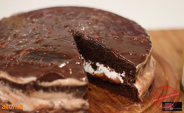 Whisk together the flora cuisine, caster sugar, eggs and vanilla until pale and creamy, pour in the melted chocolate and continue whisking. Sift together the flours; baking powder and dinking chocolate, fold gently into the egg mixture. Finally fold in the beetroot. Divide batter into two greased 7 inch cake tins and bake in a pre-heated oven temp 170°c for approximately 40 minutes. Allow cakes to cool completely. Sandwich the cakes with the jam, whipped cream and ganache. Pour remaining ganache on top.