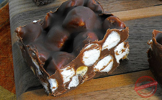 Chocolate and marshmallow squares with honeycomb pieces