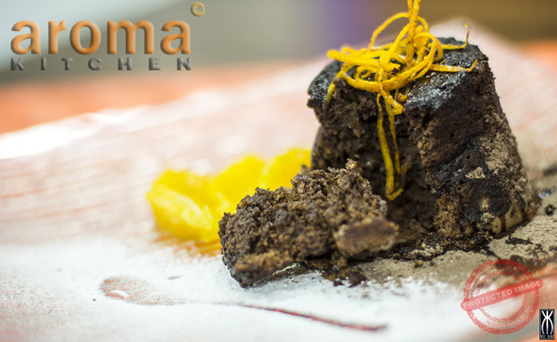 Preheat the oven to 180C. Line your fondant moulds with butter and cocoa powder and put in the fridge to set the butter. Next, whisk the eggs, yolks and sugar in a large bowl until fluffy. Melt the chocolate in a bowl over hot water. Carefully fold the flour into the egg mixture, followed by the mayonnaise, orange zest and the melted chocolate. Fill the moulds with the fondant mix and bake for 10-15 minutes until set. Allow to rest a few minutes, remove from the moulds and place onto your serving plates. Pour over the orange liqueur and dust with extra cocoa powder before serving.