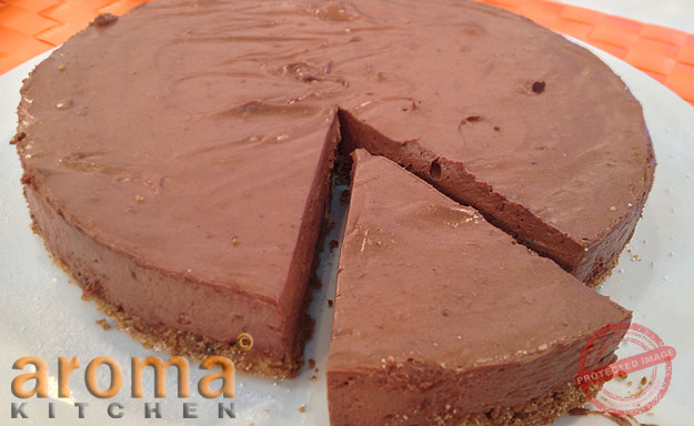 Crush the digestive biscuits and mix with the melted butter and 1 tablespoon of the caster sugar. Press into a 18cm / 7 inch cake tin and refrigerate. Whip cream until soft peak stage. Add cooled melted chocolate, then the cocoa powder mix. Blend well and set aside. Beat the cream cheese and remaining sugar together. Fold in cream/chocolate mixture and mix thoroughly. Spread into tin on top of crushed biscuits. Freeze for one hour. Refrigerate till set or overnight before serving.