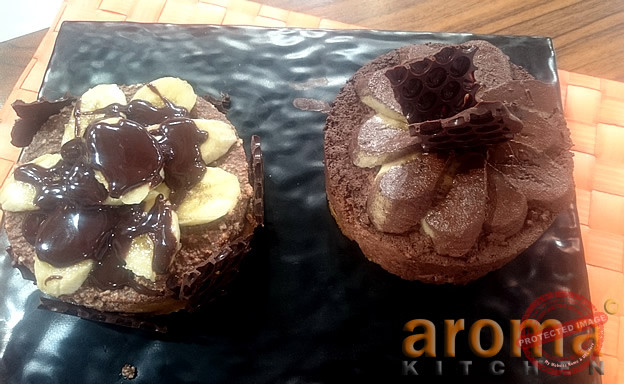 Mix the melted butter with the crushed bisciuts to make the crumb base and cover the bottom of the cake ring. Whip the cream and mix in the ricotta and sugar. Fold the melted chocolate into the ricotta mixture and add the melted gelatin mixture as well. Fill the mixture on the biscuit crumb base in the cake ring. Freeze for ½ an hour. Unmold the cheesecake and sprinkle with coco powder. Decorate with choclate garnish.
