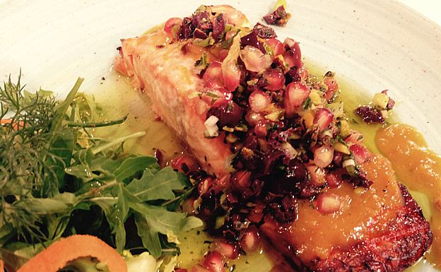 For this recipe, start by combining together the orange and lemon zest, ginger and olive oil in a bowl. Place in the salmon fillets and allow to marinate for an hour if possible. Meanwhile, make the salsa by mixing all the ingredients together and keep cool in the fridge. When you are ready to cook the salmon, remove from the marinate and place onto a baking tray. Drizzle over the honey and bake in the oven for 10-15 minutes (or to your liking) Meanwhile, place the marinate juices into a saucepan with the Dijon mustard and cook down till reduced and thick. To serve the salmon, gently lift onto 2 serving plates and spoon over the reduced marinate. Top with the prepared salsa and serve immediately with a side salad.