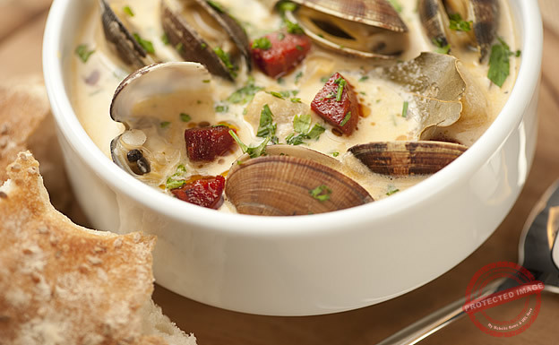 Clam chowder with chorizo sausage