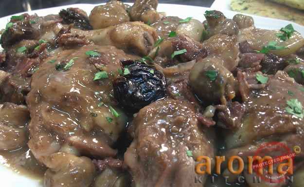 Coq au vin with prunes