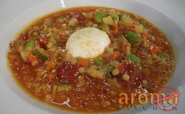 Courgette soup with eggs and goats` cheese