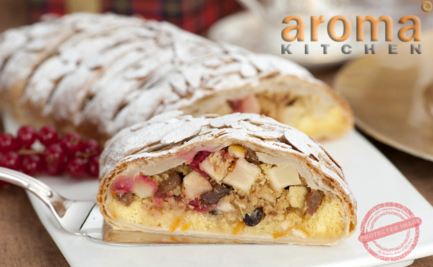 Cranberry and mincemeat puff pastry strudel