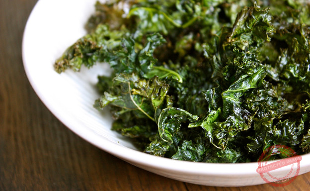 Start this recipe by cutting out the hard stems using sharp knife and discard. Place the kale into a large bowl and toss in the chilli flakes, salt, pepper and onion powder. Mix together well then mix in the olive oil and honey, coating all over well. Place the kale onto a large baking sheet in 1 layer and bake in the hot oven at 160`c for 20-30 minutes, tossing around in the tray 2 times during the cooking time. When ready, the kale should be dry and crispy. Remove from the oven and allow to cool before serving.
