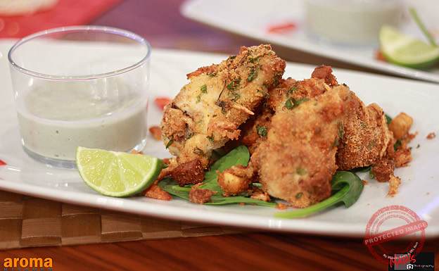 Crush the croutons roughly with the aid of a rolling pin, mix together with the parmesan, garlic powder, chilli, zest, paprika, parsley and oregano. Cut the wings in halve from the joint, season with salt and pepper and roll in the flour. Dip in egg and roll in the crushed croutons mixture. Bake of deep fry as desired. To make the dip, melt the blue cheese with the honey and cream on low energy in a micro wave. Allow cooling completely before whisking in the mayonnaise.