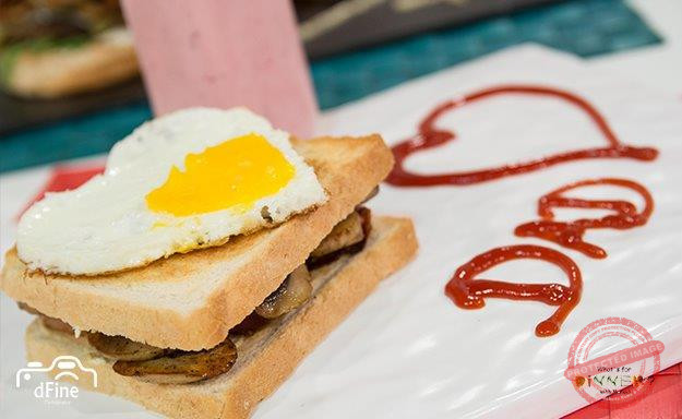 Start this recipe by frying the mushrooms and bacon in a frying pan with a little butter till cooked. In another small frying pan, heat a little oil and place in your heart shaped cutter. Separate the egg yolk from the white and pour separately into the cutter in the pan. Lower the heat and cook the egg, removing the cutter after a minute or so when the egg begins to solidify. In the meantime, toast the 2 bread slices and spread with butter. Lay a slice of toast on a large slate serving plate and lay on the 3 bacon slices and mushrooms. Cover with the 2nd piece of toast and lay over the cooked heart shaped fried egg. Sprinkle with chopped parsley use a piping bag to write `Happy Fathers Day` around the edge of the plate.