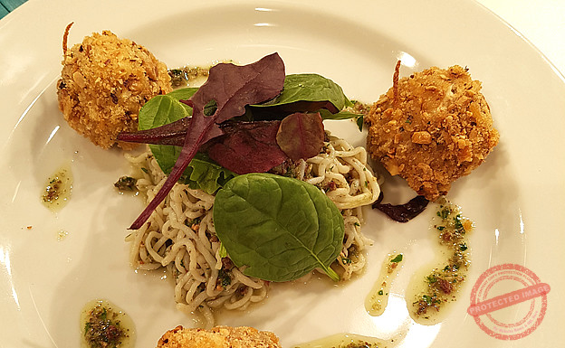 Faqqiegħ bil-feta fuq insalata tal-għaġin biz-zalza verde