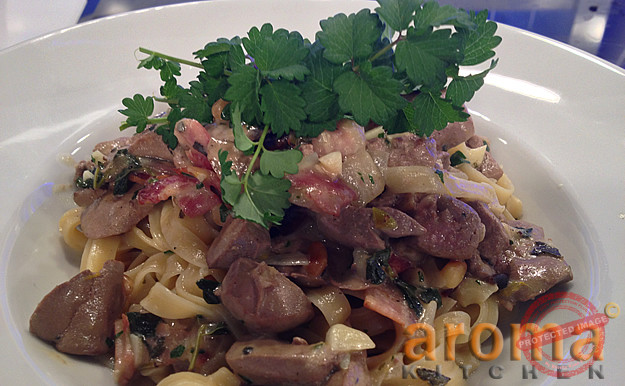 Fettucini with rabbit liver and orange zest