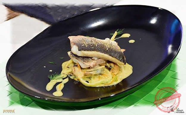 Place the fish on an oven dish skin side up, drizzle with olive oil, salt, pepper and place under a hot grill until golden brown. Dice and boil the potato, mash and mix in the wasabi, butter, cream and season. Use half the butter to cook on very low heat the roughly chopped fennel and garlic, once softened add the mussels, dill and toss, add 1 tsp orange zest than the wine and reduce by half. Add the cream and reduce again until sauce is thickened. Take The segments out of the orange and toss them in once removed from heat.
