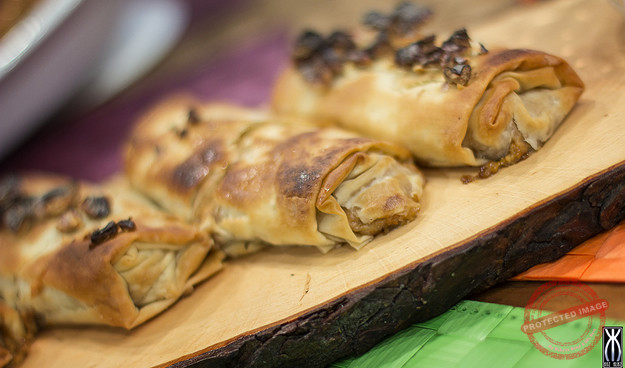 Filo pastry almond and apple strudels