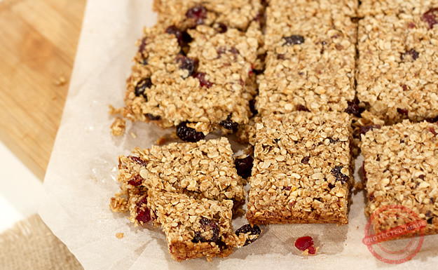 Flapjacks with honey, dried cherries and cranberries