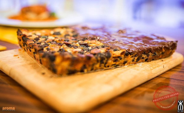 Grease and line an 18cm x 28cm baking tray with baking paper. Mix the dried fruits, almonds, cherries and apricots in a bowl together with the flour. Melt the butter and honey over low heat, cook for 3 to 4 minutes, stirring continuously. Pour over the fruit mixture and stir in the beaten egg until well combined. Transfer to mixture to the baking dish and flatten with spoon into a smooth surface. Bake in a pre-heated oven, 175°c for approximately 30 minutes. Remove from the oven, allow setting in the tray. Spread with the melted chocolate and chill for a couple of hours before slicing.