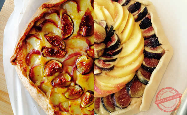 Start this recipe by preparing the pastry. Rub together the flour, baking powder, butter and sugar. Add in the lemon zest and vanilla and add in enough water to form into a pastry. Roll out onto a floured worktop into an 11inch circle, trim the edges neatly and place onto a lined baking sheet. Next prepare the frangipan by mixing all the ingredients together. Spread the frangipan evenly over the pastry circle , leaving a 2 cm border without any frangipan. Slice the peach into thin slices and cut the figs into 4 or 6 pices depending on their size. Arrange decoratively over the frangipan and fold in the extra pastry in creating an edge. Sprinkle with the tablespoon of caster sugar and bake in the oven at 200`c for 30-35 minutes. As soon as the galette comes out of the oven brush the fruit with warmed apricot jam to glaze.