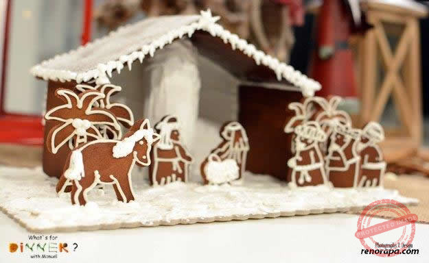 Biex tagħmel il-gingerbread, ħallat flimkien id-dqiq, il-ġinġer u s-soda u warrab it-taħlita f’ġenb. Issa, f’kazzola kbira, dewweb flimkien il-butir, il-golden syrup u z-zokkor. Magħha żid it-taħlita tad-dqiq li tkun warrabt u ħawwad sakemm tifforma għaġina ratba. Qabel tiftaħ l-għaġina, poġġi folja kartaforn fuq il-wiċċ tal-bank/mejda ħalli t-taħlita ma teħilx. Ferrex ftit dqiq fuqha u iftaħ l-għaġina f’biċċiet żgħar. Uża l-forom jew sikkina biex taqta’ u poġġi l-biċċiet fuq tilari miksija bil-kartaforn. Aħmi fil-forn f’temperatura ta’ 160oC għal 20 minuta, imbagħad dawwarhom bil-galbu fuq in-naħa l-oħra u sajjarhom għal 5-10 minuti oħra biex jinħmew minn kullimkien. Meta jkunu lesti, oħroġhom mill-forn u ħallihom jiksħu sew qabel tgħaqqad il-presepju u żżejjen bil-ġelu.