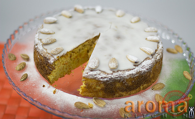 Beat the egg yolks and sugar in a bowl until fluffy. Fold in the ground almonds, grated carrots, grated lemon zest and juice and the rum. Fold in the gluten free flour and carefully fold in the beaten egg whites. Pour the batter into a greased cake mould that has been coated with flour and bake in the oven for 50-60 minutes at 180`c. When cooled completely, sprinkle with icing sugar and decorate with almonds before serving.