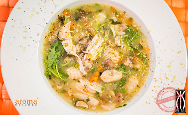 Gluten free chicken soup with potato gnocchi