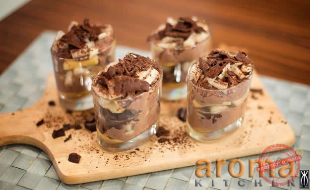 Start this recipe by making a sugar syrup to soak the savoardi fingers. Place the 50g sugar, peel of a lemon, 1 cinnamon stick and 200ml water in a saucepan and boil for a few minutes. Remove off the heat and allow to cool down completely. Meanwhile, make the ricotta filling by blitzing together the ricotta, cocoa, icing sugar and lemon zest in a food processor. To put this dessert together, you will need 4 glasses. Soak the gluten-free sponge fingers in the sugar syrup and place 1 ½ pieces into the bottom of each glass. Cover with half of the ricotta filling and sprinkle over the chopped chocolate. Spoon over half of the chopped pears. Dust with a little cocoa, then repeat the layering process again with more soaked sponge fingers and the remaining ricotta filling. Finally, dust the top with a little extra cocoa powder. Place in the fridge to chill for at least 30 minutes before serving.