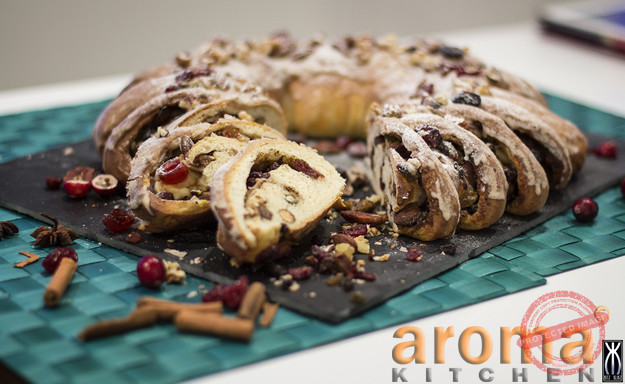 Gluten-free fruit and nut ring with cinnamon glace` icing