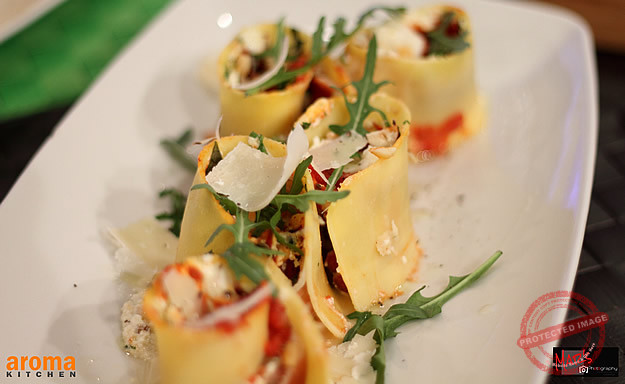 Gluten-free lasagna rolls with Ricotta, speck and walnuts