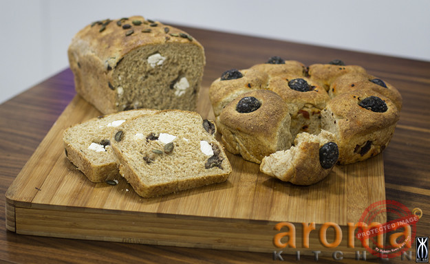 Gluten-free sun-dried tomato, olive and feta cheese bread