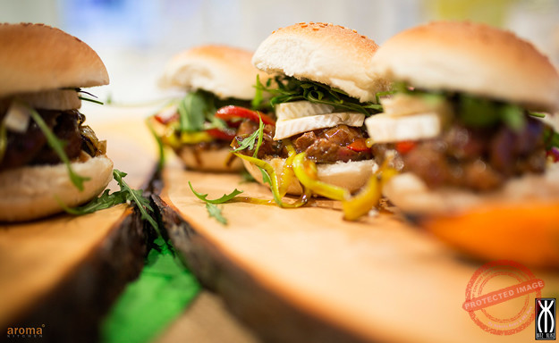 Season and grill the steaks separately on a griddle pan until medium cooked. Shred the leeks, onions and slice the peppers sauté with the paprika and olive oil until softened. Now pour in both sauces and toss, bring to the boil and remove from heat. Slice the beef and mix with the sauce mixture, open the buns and place some beef mixture in topped with brie. Keep the bun closed with the help of a fancy tooth pick. Cut the sweet potato in wedges, blanch and then deep fry to serve on the side with some fancy lettuce.