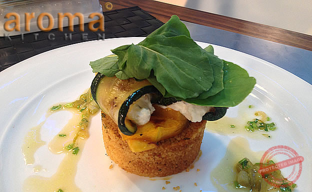 Grilled courgette involtini on Mediterranean couscous with lime and cider infusion