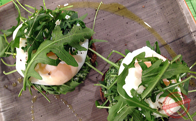 Grilled Portobello mushrooms with creamed spinach and poached eggs