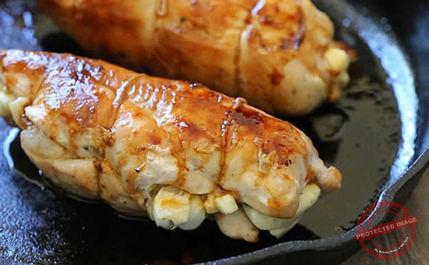 Gruyere , apple and prune stuffed chicken breast