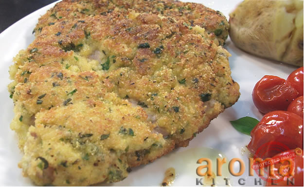 Biċċiet tal-majjal la Taljana bil-panura tas-salvja u l-parmeġġan