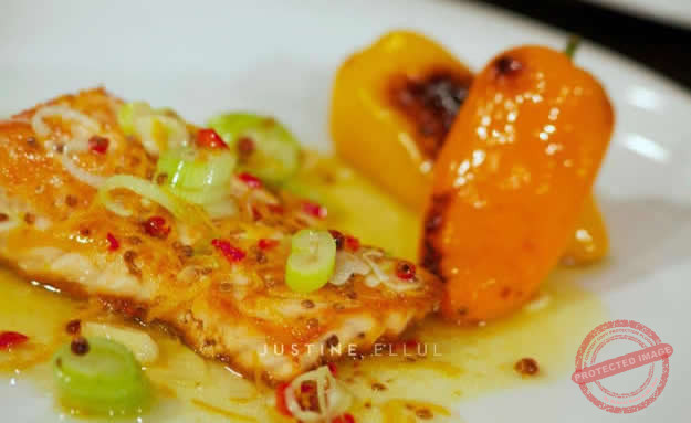 Wipe a non-stick frying pan with a little olive oil and fry the salmon fillets for 3-4 minutes on each side until just cooked through. Remove from the pan and lay in a single layer in a non-metallic dish. Wipe out the pan again until clean and dry-fry the coriander seeds until they begin to release their aroma. Tip out of the pan and lightly crush. Mix the crushed coriander seeds with all the other ingredients and pour over the salmon. Cover with cling film and leave to marinate in the fridge for at least 12 hours. Serve the salmon fillets at room temperature with a couple of tablespoons of marinade, a bitter leafy salad and plenty of good crusty bread to mop up.