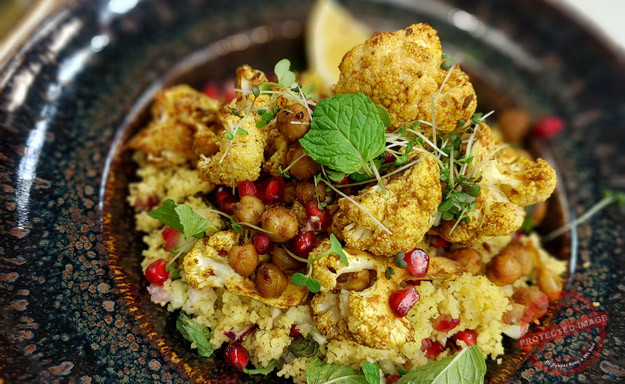 Moroccan-style roasted cauliflower and chickpea couscous salad