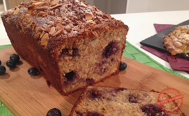 Heat the oven to 180`c and grease and line a 22cm loaf tin. Cream together the butter and sugars till light then mix in the eggs one at a time. Next, mix in the mashed bananas followed by the flours, baking powder and milk. Finally stir in the frozen blueberries and ½ of the muesli. Pour the mixture into the prepared tin, cover the top with the remaining muesli and bake for 45-50 minutes.