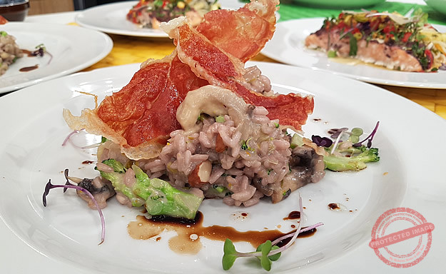 Risotto tal-faqqiegħ u larinġ bil-ġobon tat-tursina u lewż