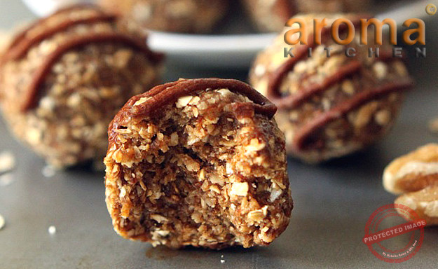 In a food processor combine oats, cocoa powder, cinnamon and ginger. Add the nuts and fruits and mix well. You can chop all nuts and fruits before adding and just mix in with the oat mixture. Alternatively, you can use a food processor and add everything as wholes and let it crush everything for you. Add the vermouth for taste and slowly add the milk until it forms a firm mixture. Mixture should resemble the texture of a dough, however it should be very moist and sticky.